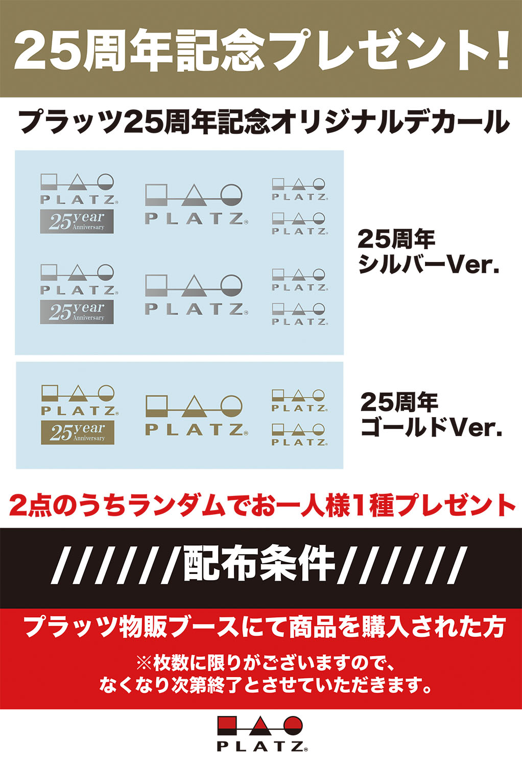プラッツ25周年を記念してプラッツロゴが限定デカールになりました!こちらは会場で配布条件を満たしたお客様へ無料で配布させていただきます。