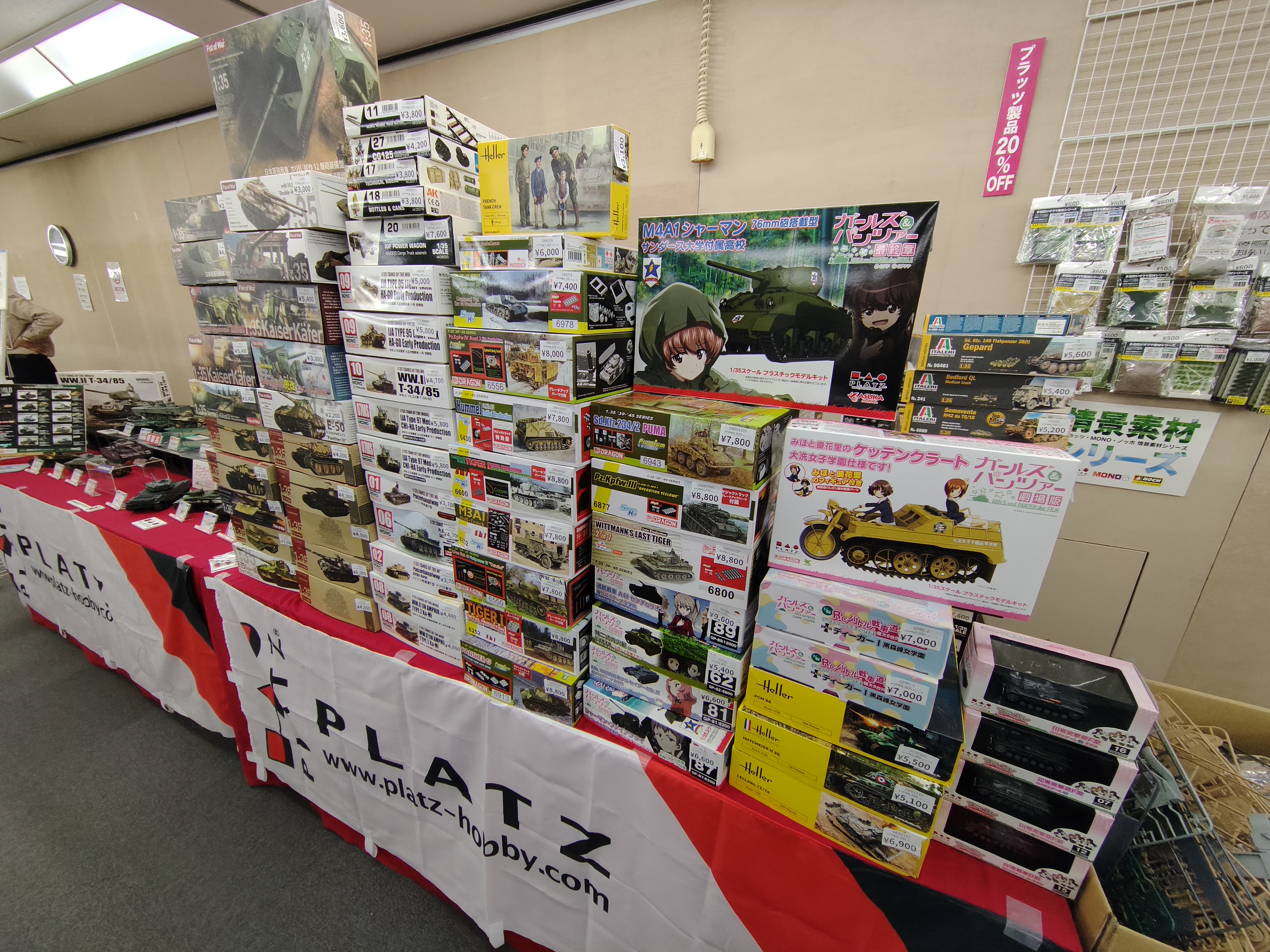 プラッツブースでは、プラッツ取り扱い商品の戦車などAFVキットやガールズ&パンツァーのキット、ジオラマ素材を販売しました。