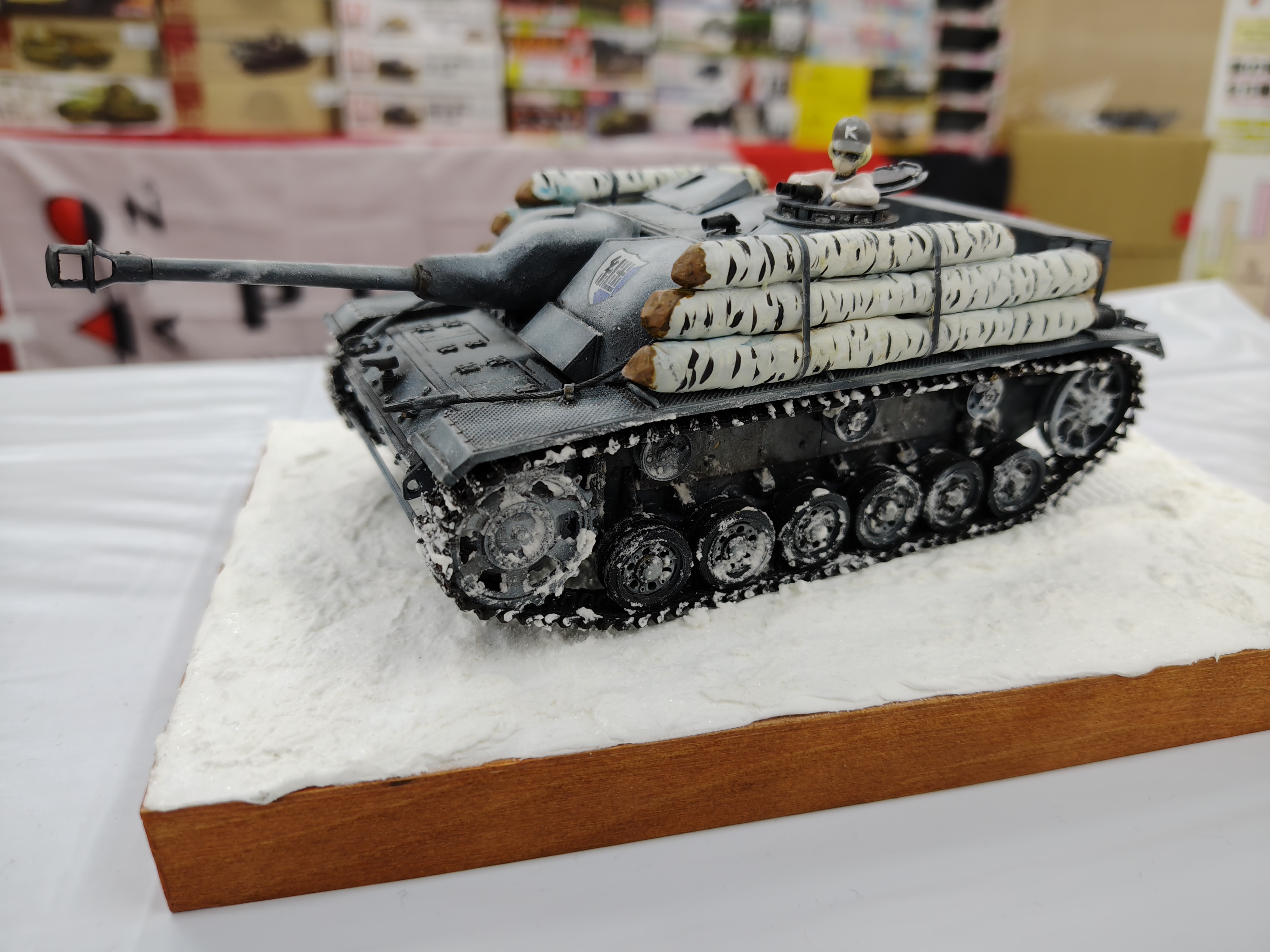 足回りや履帯も丁寧に作り込まれていて、実戦で使用された車両の重量感が伝わってくる完成度の高い作品でした。